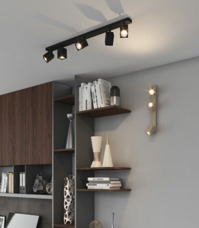 La struttura a binario metallico lungo 86 cm presenta 5 faretti snodabili e indipendenti dalla forma squadrata che consentono di dirigere la luce in modo preciso ed efficace, ideale per l’illuminazione di angoli cucina, camerette, corridoi e salotti, o anche per mettere in risalto dettagli e zone specifiche della stanza.