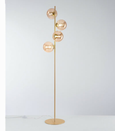 Piantana HONEY PT4 firmata Luce Ambiente Design, composta da stelo in metallo impreziosito da 4 diffusori sferici in vetro soffiato.