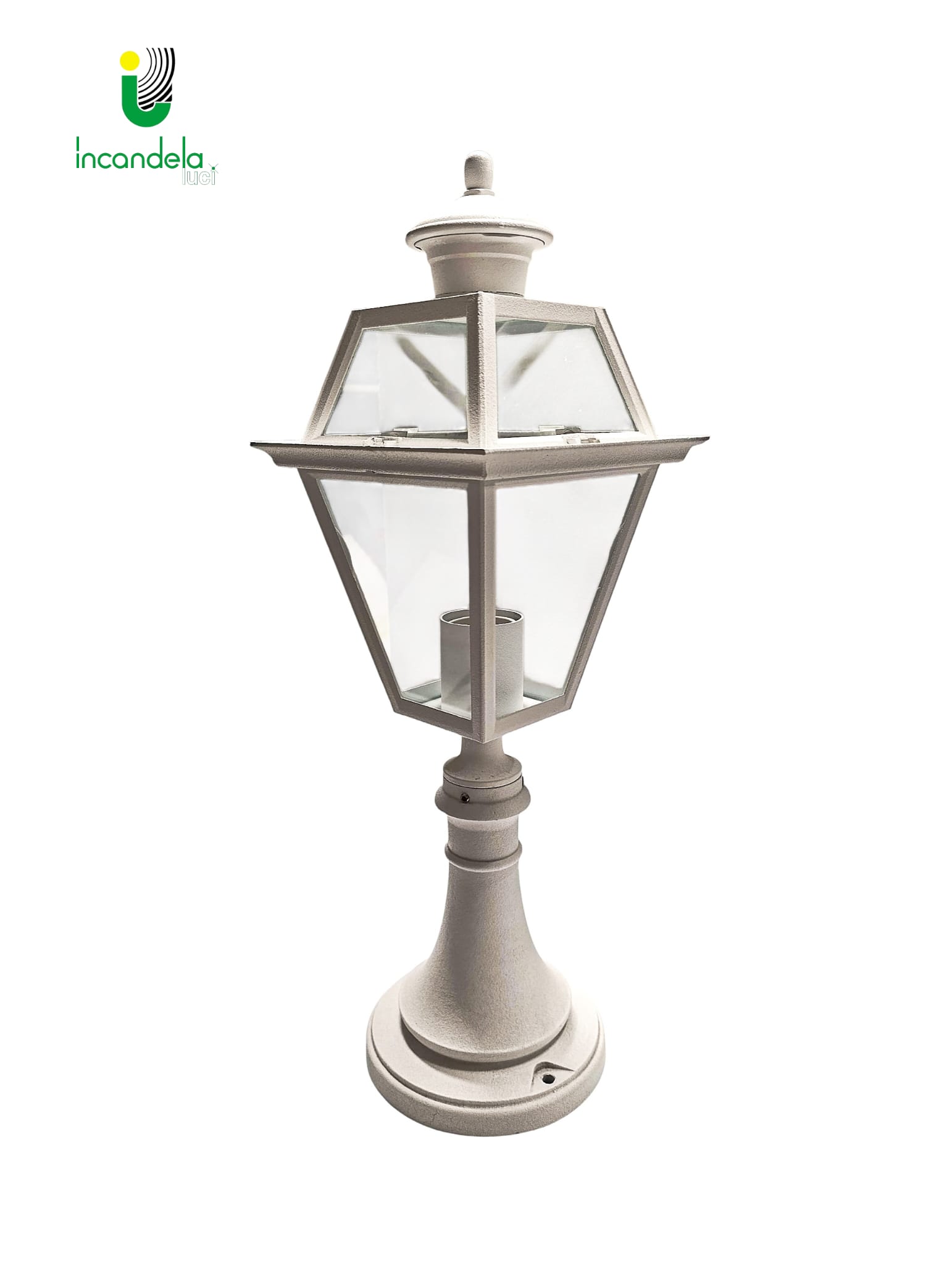 lanterna di Ismos da pilastro in fusione di alluminio, colore Bianco