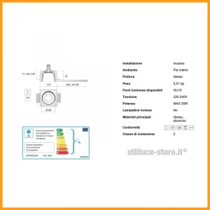 Portalampada Certificato: Dotato di un portalampada GU10 certificato in Italia, conforme alle attuali normative di sicurezza anti-strappo.
