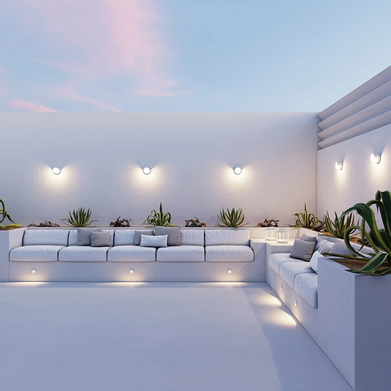 Blis è un’applique da parete o eventualmente lampada da soffitto in policarbonato per esterni. Ha un grado di protezione IP65 che la protegge da acqua e polvere da ogni direzione e ne garantisce un’ottima resistenza e lunga durata. Blis è dotata di led ed interruttore Switch integrati che permette un cambio di temperatura di colore a scelta tra 2700K e 3000K a luce calda e 4000K a luce neutra. Questa lampada è perfetta per ambienti outdoor come giardini, terrazze, vialetti, zone piscina, locali all’aperto, alberghi, ville e luoghi dove grazie a Blis l’atmosfera diventerà accogliente, ben illuminata e confortevole. Blis è disponibile nella versione Round o Square e nelle tre finiture Corten, Nero o Bianco, colorazioni e forme semplici ed eleganti per garantire stile in ogni tipo di zona esterna.
