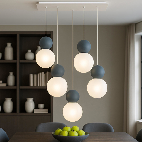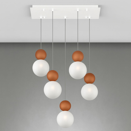 Pensato per chi desidera una luce decorativa ma anche funzionale, il lampadario Cottage di Top Light è la scelta ideale per ottenere un’illuminazione diffusa a 360°, grazie alla forma sferica dei diffusori in vetro pirex satinato che proiettano la luce in modo uniforme in tutta la stanza. I cinque punti luce, regolabili singolarmente in altezza, offrono flessibilità nell’installazione e un impatto visivo equilibrato. Le sfere superiori in metallo verniciato  aggiungono carattere e calore alla composizione. Le lampadine non sono incluse e possono essere acquistate separatamente in base alle proprie preferenze di intensità e tonalità.