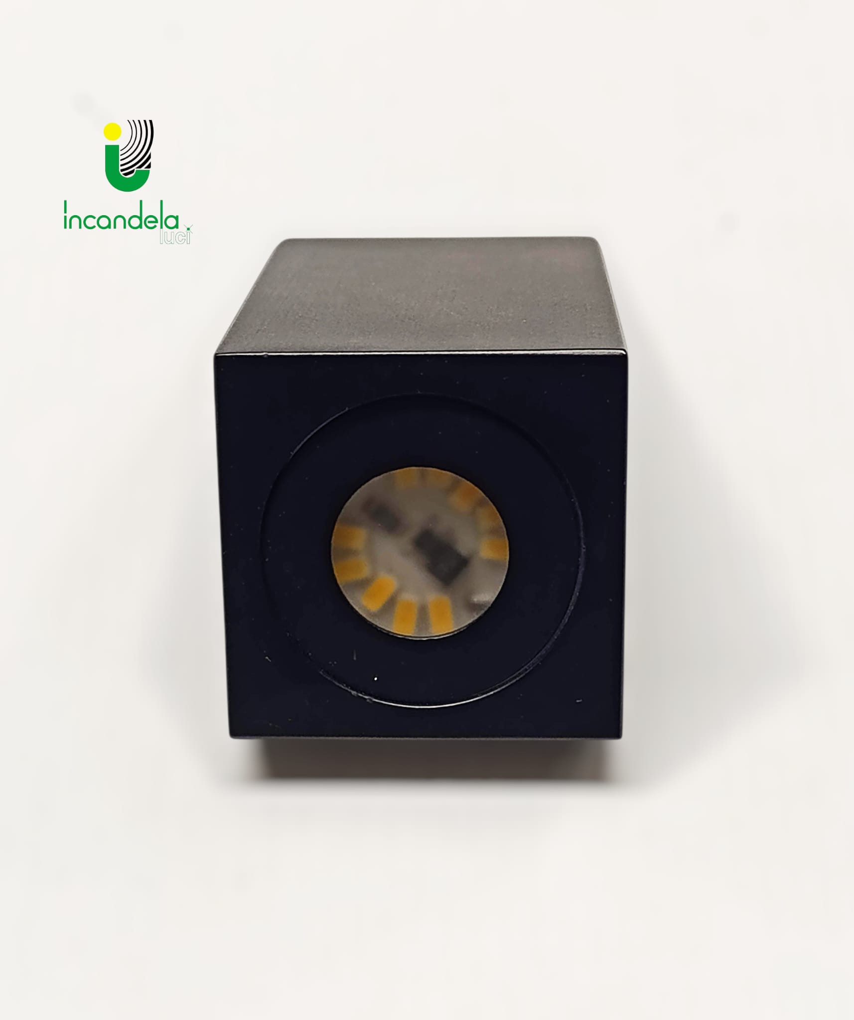 Faretto da parete e soffitto inclinato con corpo in alluminio. Fornito con LED 220V che non necessita di alimentatore.verniciato nero.
