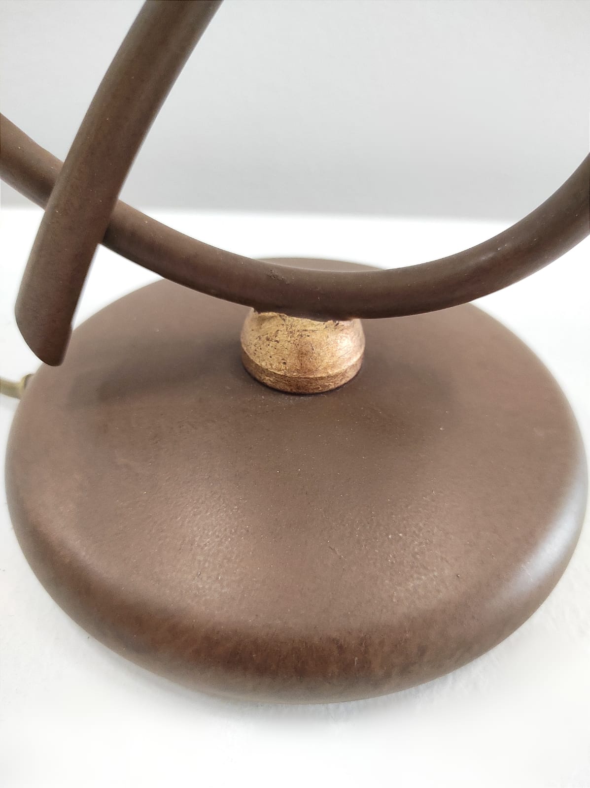 Lampada da tavolo, con struttura ferro ruggine e foglia oro, diffusore in vetro di murano colore champagne satinato 1 luce E.14.