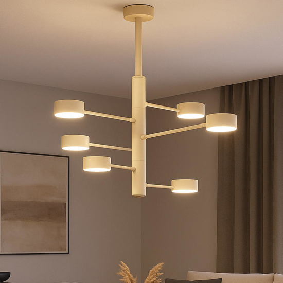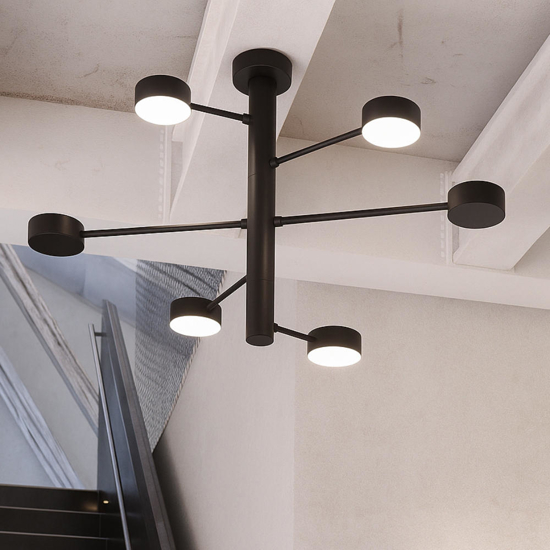 Con una raffinata finitura sabbia, questa plafoniera a soffitto della collezione Octopus firmata Top Light coniuga sobrietà cromatica e massima adattabilità luminosa. È dotata di 6 portalampade GX53 disposti su una struttura verticale in metallo, progettata per offrire un orientamento completo dei corpi illuminanti. Ogni diffusore cilindrico può ruotare a 360° per direzionare la luce in modo diretto o indiretto, secondo le necessità. L’altezza dell’apparecchio può essere facilmente regolata tramite i due distanziali forniti in dotazione, rendendolo perfetto sia in ambienti domestici che professionali dove la personalizzazione della luce è un elemento essenziale. Le lampadine non sono incluse.