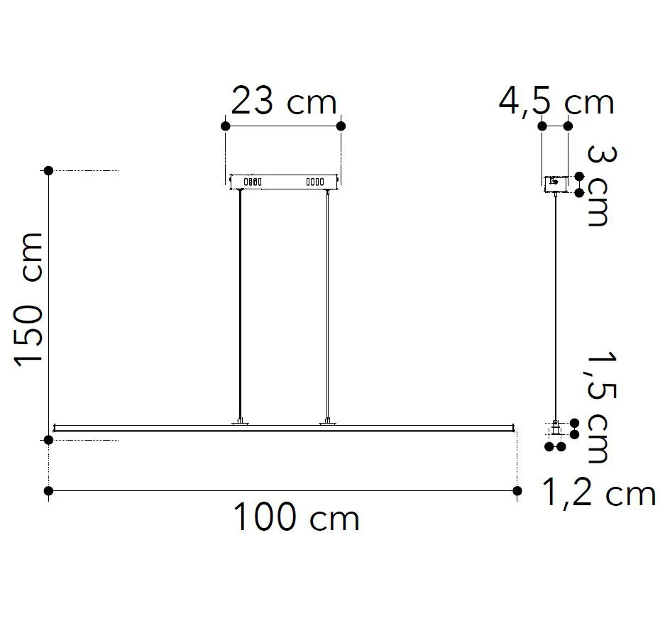 Lampadario Led lineare realizzato in alluminio e composto da una bacchetta sottile a sezione quadrata con diffusore opale.