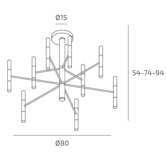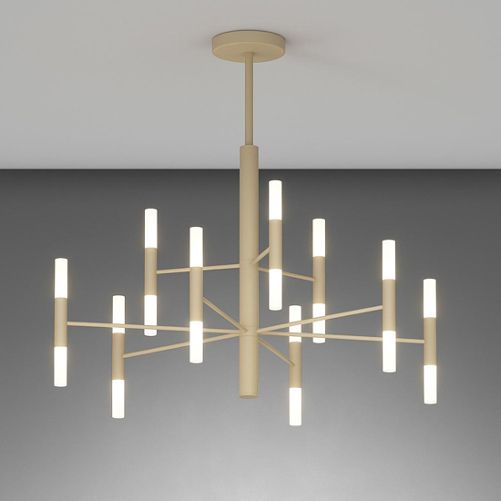 Il lampadario SPACE firmata Top Light, in elegante finitura sabbia, si distingue per il suo design geometrico e arioso. I 9 bracci metallici si sviluppano da un asse centrale verticale creando una struttura tridimensionale bilanciata, su cui si distribuiscono armoniosamente diciotto diffusori cilindrici in acrilico satinato. Grazie all’emissione luminosa sia verso l’alto che verso il basso, questo lampadario moderno assicura una diffusione omogenea della luce a 360°, rendendolo perfetto per l’illuminazione generale di soggiorni, sale da pranzo o ambienti living dal gusto moderno. I diffusori, facilmente smontabili, permettono una comoda sostituzione delle lampadine con attacco G9. L’altezza è regolabile tramite distanziali inclusi. Le lampadine non sono fornite in dotazione.